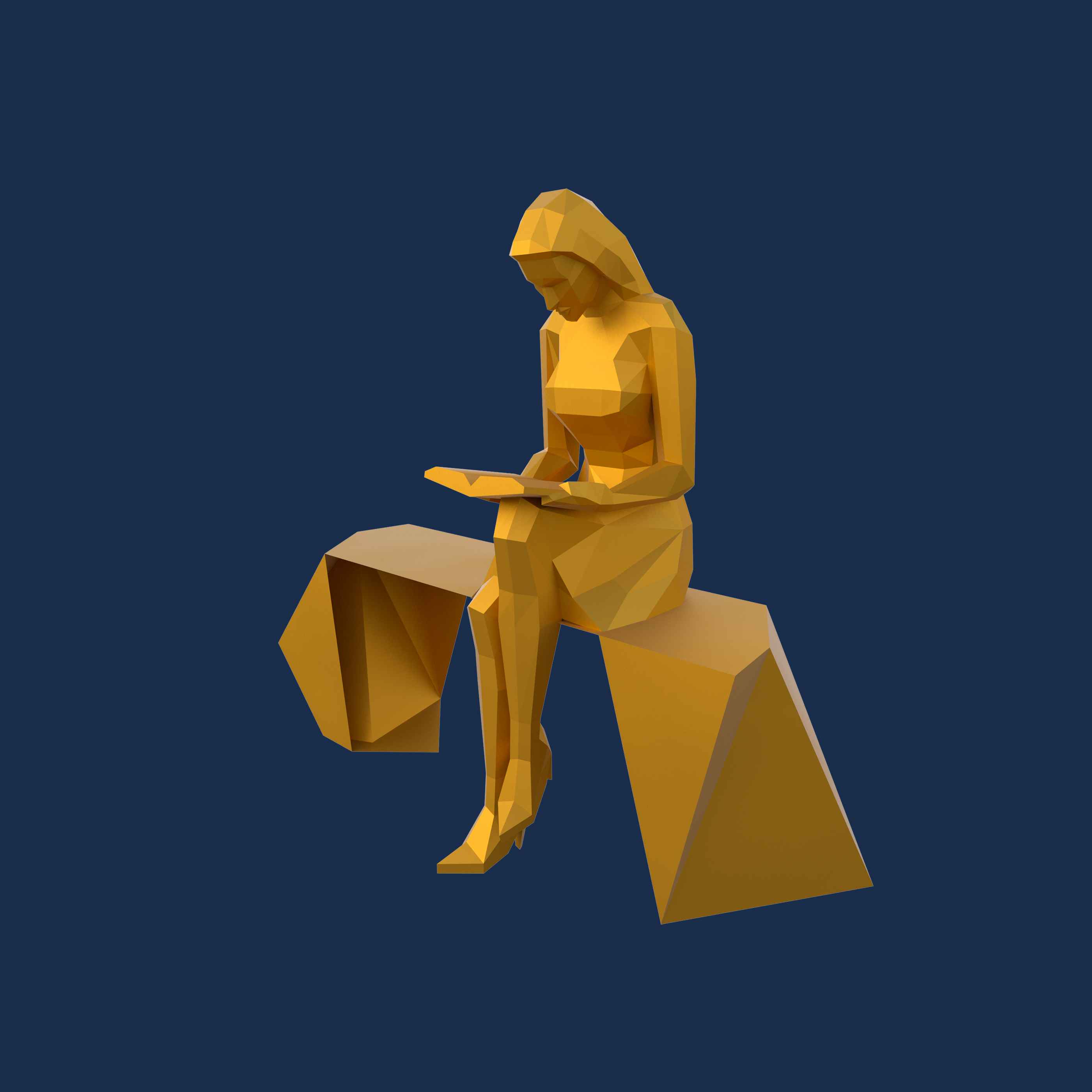 Полигональная скульптура «Девушка на скамье»