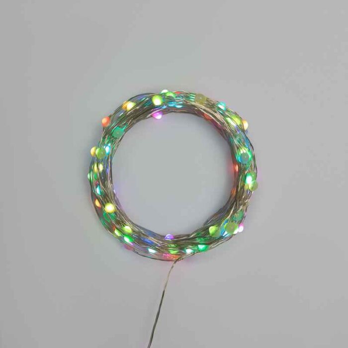 Гирлянда Роса 10 м RGB с Динамикой, 100 LED, Серебряный металл, IP44, NN