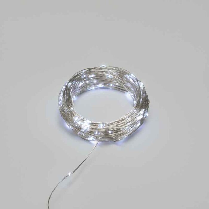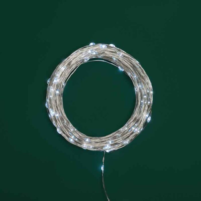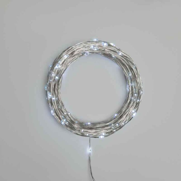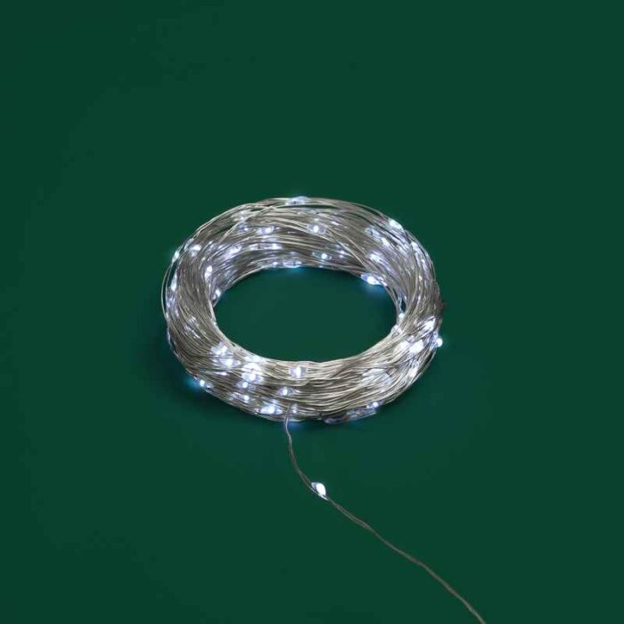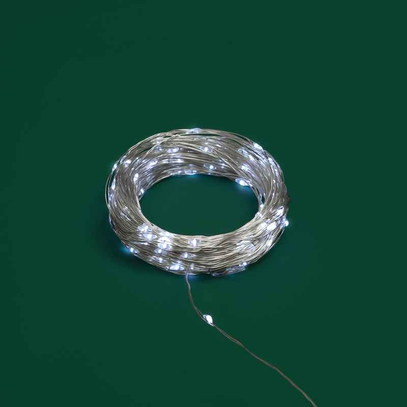 Гирлянда Роса 30 м Белая Статика, 300 LED, Серебряный металл, IP44, NN