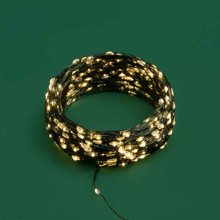 Гирлянда Роса 50 м Тепло-Белая с Динамикой, 500 LED, Тёмно-зелёный металл, IP20, NN