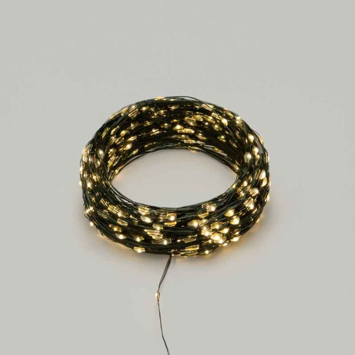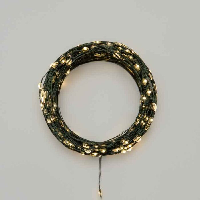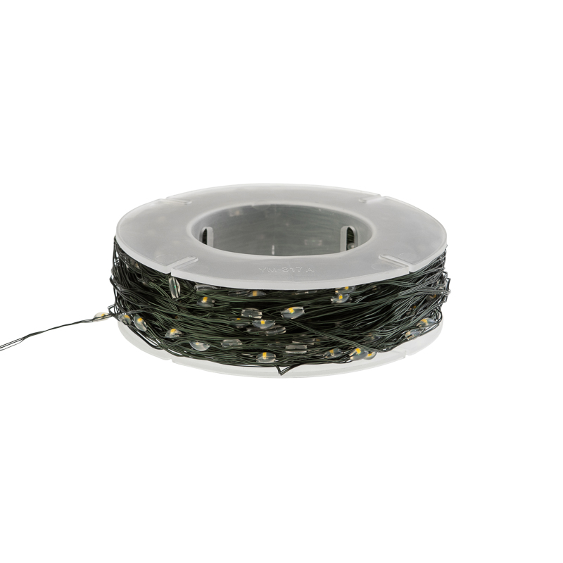 Особенность серии «Роса» — в максимально тонком и гибком металлическом проводе. В этой модели он окрашен в тёмно-зелёный цвет, идеально сливающийся с ветками ёлки или хвойных композиций. Благодаря этому свет остаётся в фокусе, а сама проводка визуально исчезает, не отвлекая от общей картины.