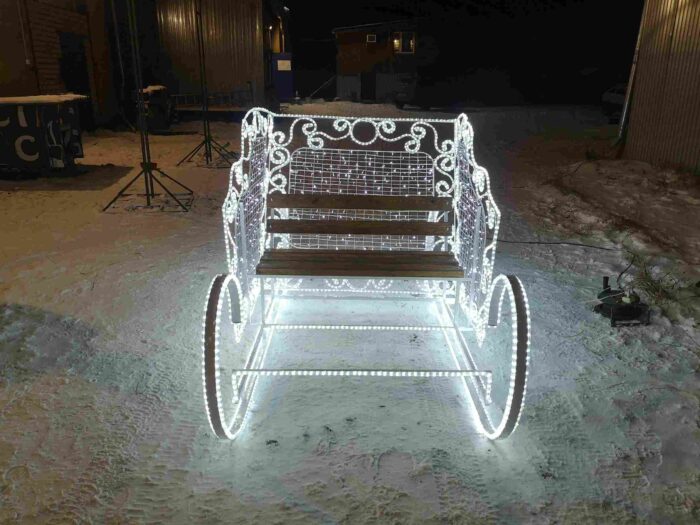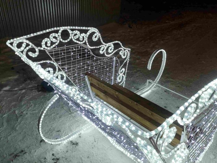 Фигура «Сани» — это не просто новогодний декор, а полноценный арт-объект, который создаёт атмосферу уюта, зимней сказки и семейного настроения. За счёт лаконичного дизайна и выразительной геометрии эта фигура одинаково уместна и в частных резиденциях, и в городском пространстве. Особенно хорошо она работает как фотозона или часть праздничной композиции.