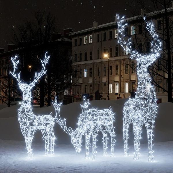 Семья оленей идеально подходит для новогодних праздников, создавая атмосферу волшебного леса в городской среде. Композиция одинаково эффектно смотрится на центральных площадях и в небольших дворах.