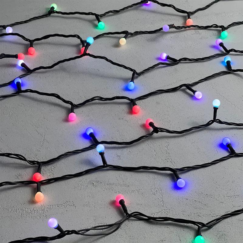 Гирлянда Шарики 10 м RGB с Мерцанием, 100 LED, Чёрный ПВХ, IP65, LTC