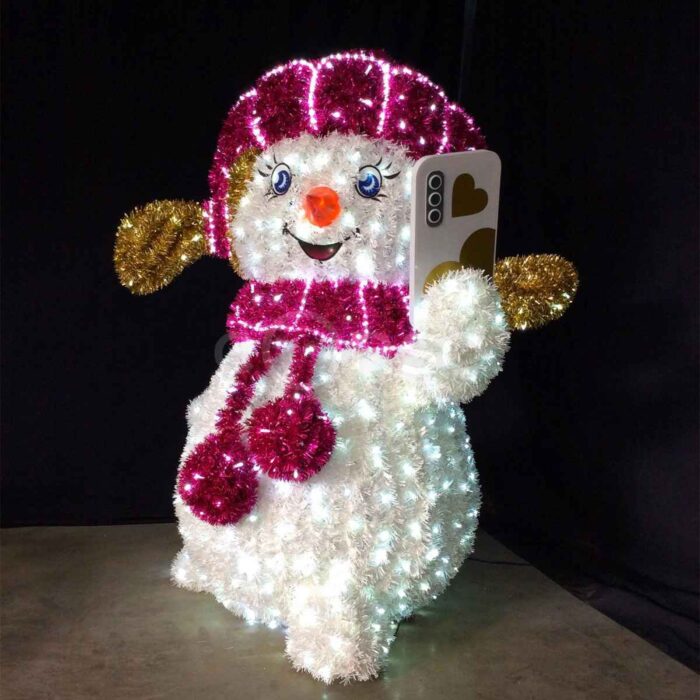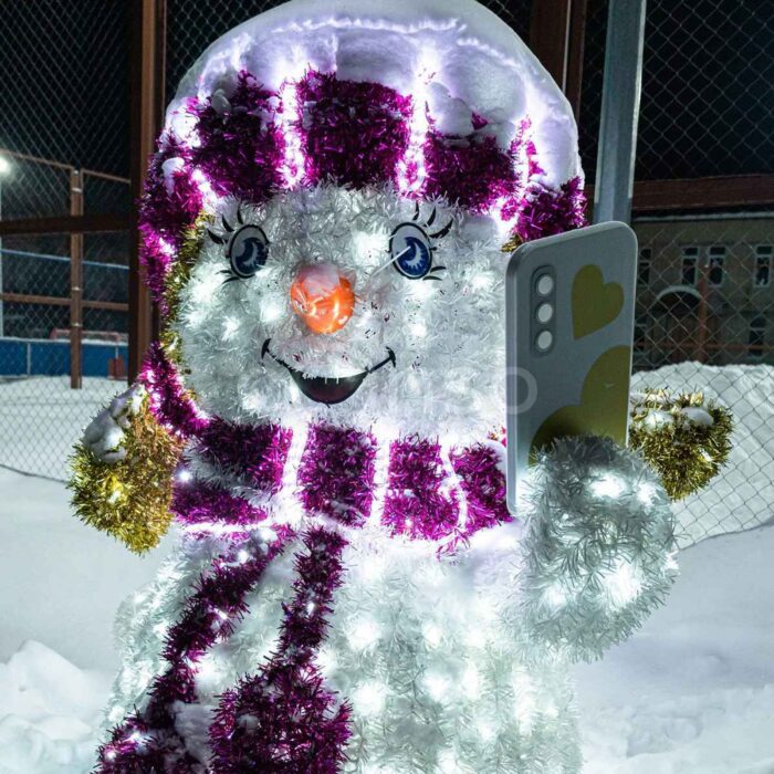 Новогодняя световая фигура «Снежка» — яркий мишурный снеговик высотой 2 метра. Подходит для уличной установки: IP65, холодное свечение, алюминиевый каркас. В комплект входят пригрузочные плиты. Идеальна для фотозон, входных групп и украшения ТЦ, парков и площадей.