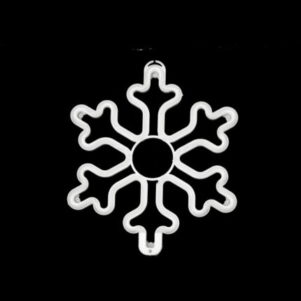 Белая светодиодная снежинка из гибкого неона — это универсальный элемент оформления, подходящий как для уличных пространств, так и для интерьера. Благодаря яркому свечению и лаконичной форме, она гармонично дополняет новогодний декор, не перегружая визуальное пространство. Такая фигура станет акцентом в композиции из гирлянд, ёлок, арок и других элементов. Световая снежинка востребована для украшения фасадов зданий, входных групп ТЦ, офисов, кафе, жилых комплексов и частных домов.
