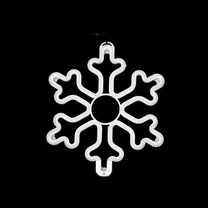 Световая фигура «Снежинка» диаметром 30 см с белым свечением — универсальный элемент новогоднего декора для улицы и интерьера. Выполнена из гибкого неона, устойчива к осадкам и морозам, степень защиты IP44. Подключение в комплекте. Отлично подходит для фасадов, витрин, входных групп и городских пространств.