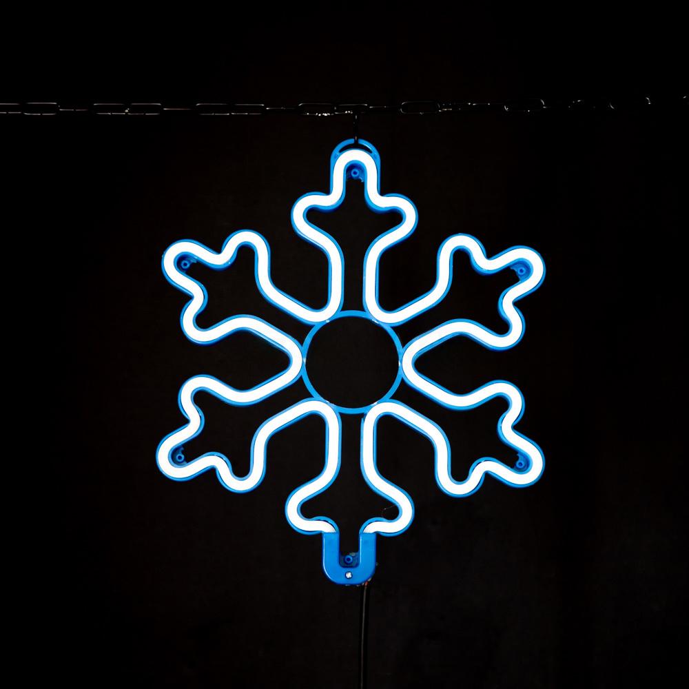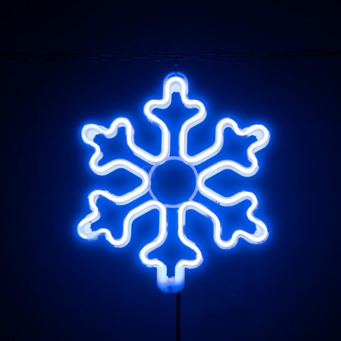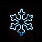 Световая фигура «Снежинка» диаметром 30 см с синим свечением — универсальный элемент новогоднего декора для улицы и интерьера. Выполнена из гибкого неона, устойчива к осадкам и морозам, степень защиты IP44. Подключение в комплекте. Отлично подходит для фасадов, витрин, входных групп и городских пространств.