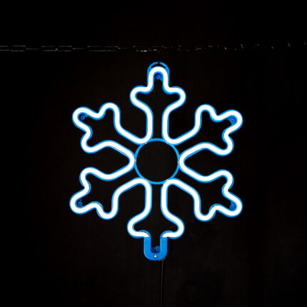 Световая снежинка из гибкого неона с синим свечением — это эффектный акцент для новогоднего оформления фасадов, витрин, входных групп и общественных пространств. Диаметр фигуры — 30 см, форма — лаконичная, универсальная, узнаваемая. Такой формат часто используют при оформлении зданий, магазинов, офисов, торговых центров и жилых комплексов. Благодаря компактному размеру снежинку можно размещать как поштучно, так и в группе с другими фигурами — для создания световой инсталляции.