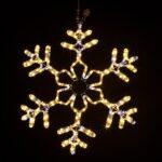 Эта светодиодная снежинка диаметром 60 см объединяет простоту формы и выразительное свечение. В мерцающем режиме она оживляет оформление, придаёт динамику и мягкое мерцание, привлекает внимание прохожих и создаёт ощущение зимней сказки.