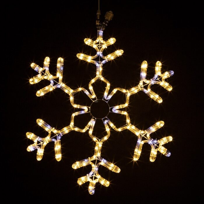 Снежинка с мерцанием 60 см — интересный акцент для витрин, фасадов, декоративных зон. Она оживляет композицию, создаёт динамику, волшебство, и при этом остаётся лаконичной и элегантной.