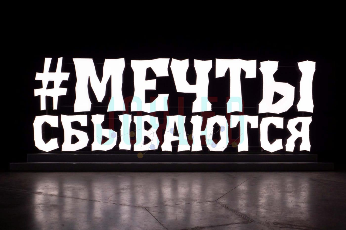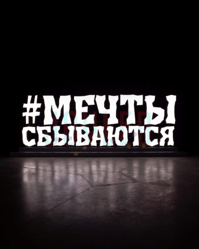 Светодиодная 3D-надпись «Мечты сбываются» 6,5×2,25 м, IP65, холодное свечение