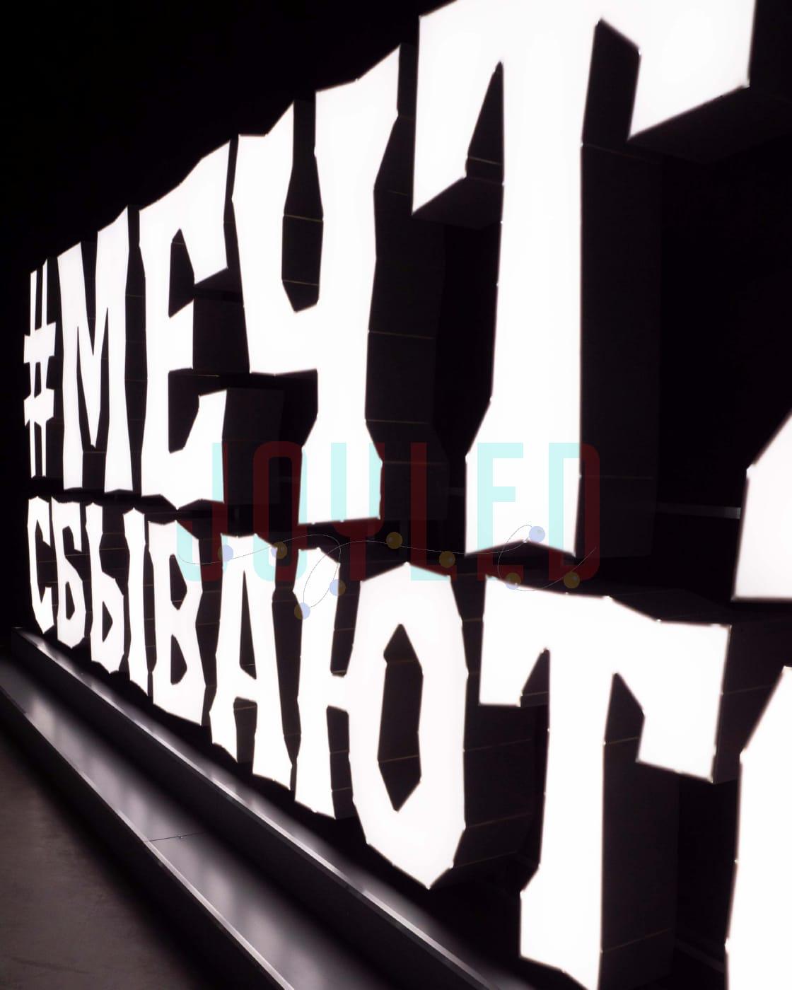 Светодиодная 3D-надпись универсальна и подходит для разных форматов оформления: