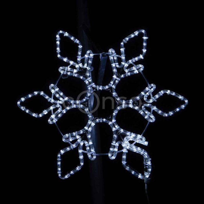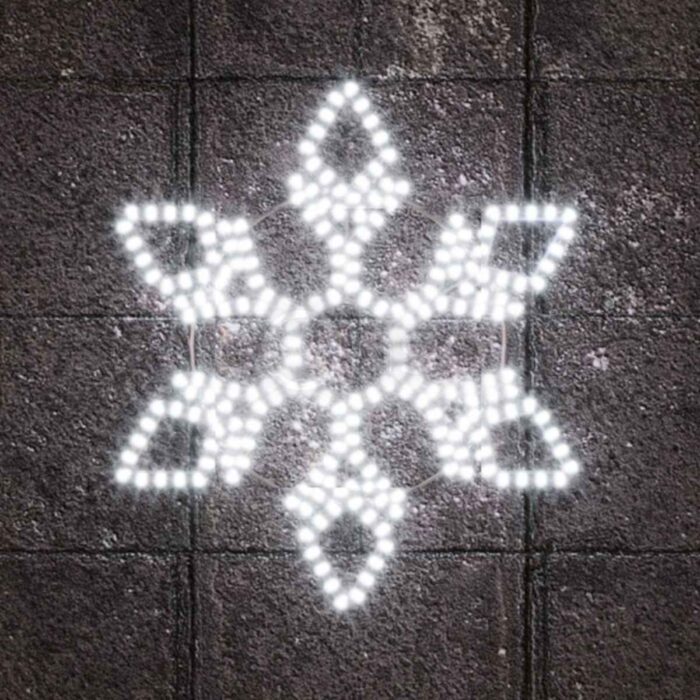 Светящиеся снежинки — это великолепный вариант для украшения фасадов зданий, новогодних елок, деревьев и торговых площадок. Эти 2D фигуры имеют прочный алюминиевый каркас, который устойчив к коррозии.