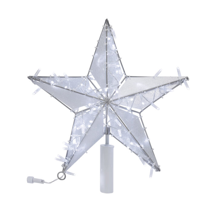 Световая фигура в форме пятиконечной звезды высотой 1 метр. Яркое белое статичное свечение, 200 светодиодов, прочный металлический каркас. Подходит для уличного оформления фасадов, входных групп, ёлок и фотозон. Компактна, легко монтируется, подключается к 230 В.