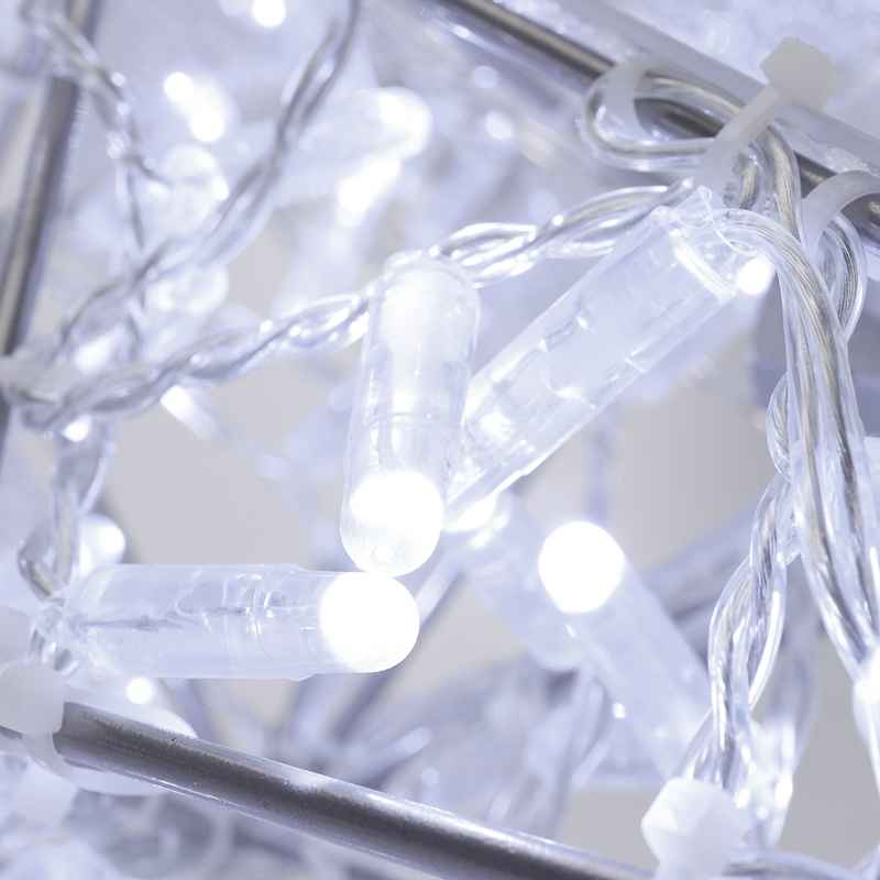 Фигура выполнена на прочном металлическом каркасе с антикоррозийным покрытием, что обеспечивает ей устойчивость к климатическим нагрузкам и долговечность. Вес — всего 6,99 кг, благодаря чему её легко монтировать, демонтировать и перемещать. Каркас обтянут надёжной светодиодной нитью с равномерным плотным шагом — в конструкции используется 200 ярких белых светодиодов, обеспечивающих яркое равномерное свечение.