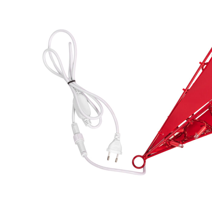 Каркас выполнен из металла с антикоррозийным покрытием, что гарантирует надёжность и устойчивость конструкции при длительном использовании на улице. Вес фигуры — всего 6,6 кг, что делает её удобной для монтажа и транспортировки. Светодиодная нить плотно и равномерно закреплена по периметру — используется 200 красных диодов, создающих насыщенное, но не слепящее свечение.