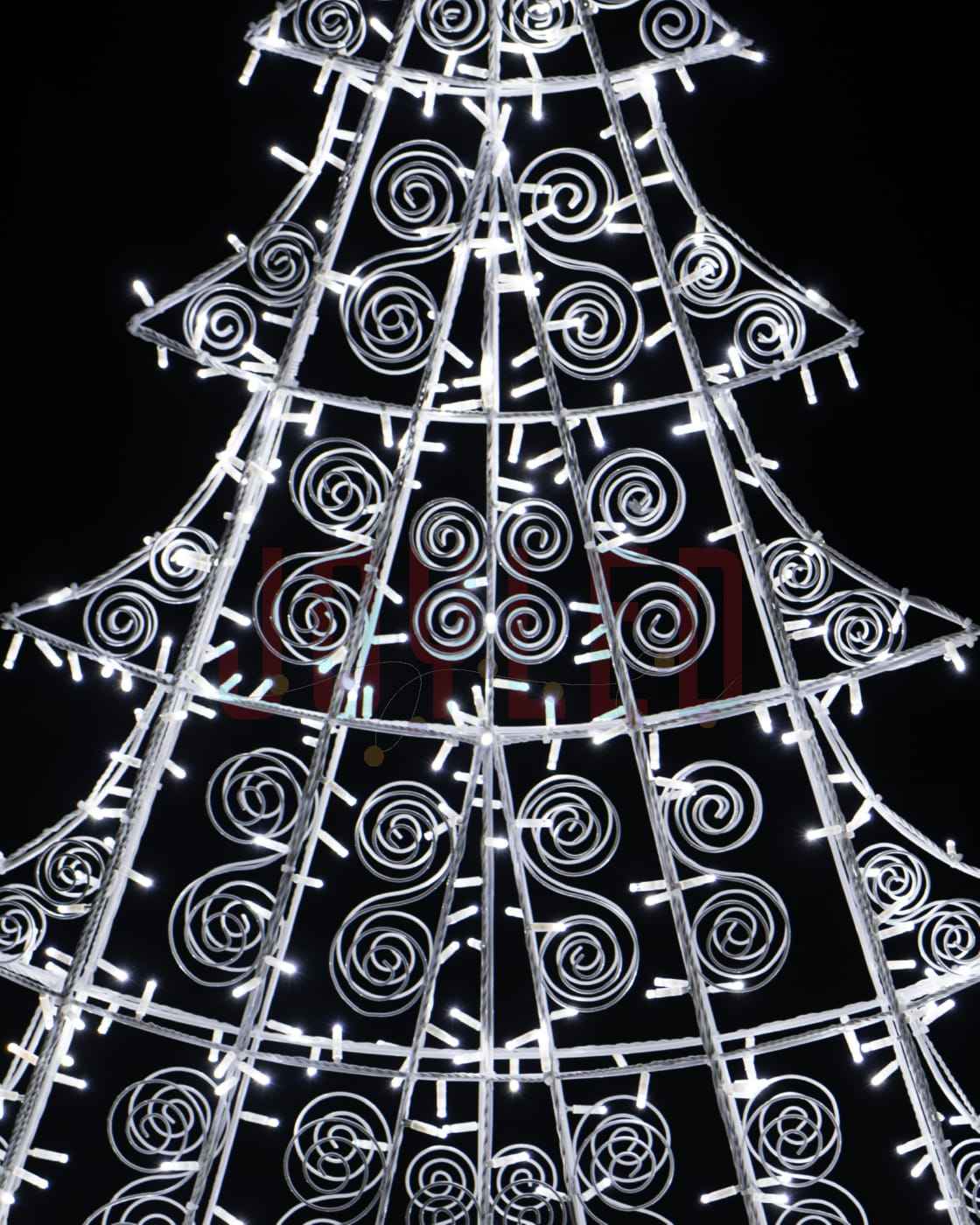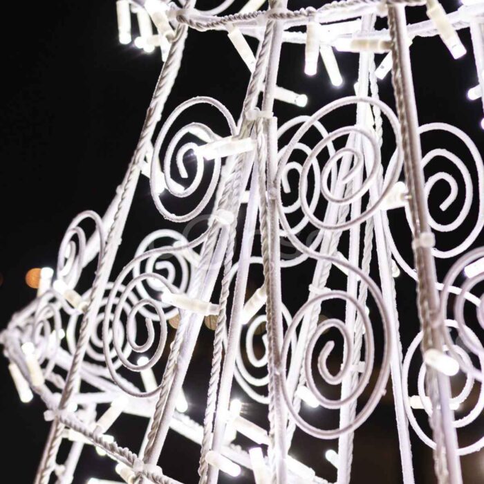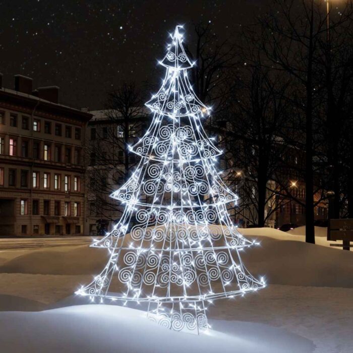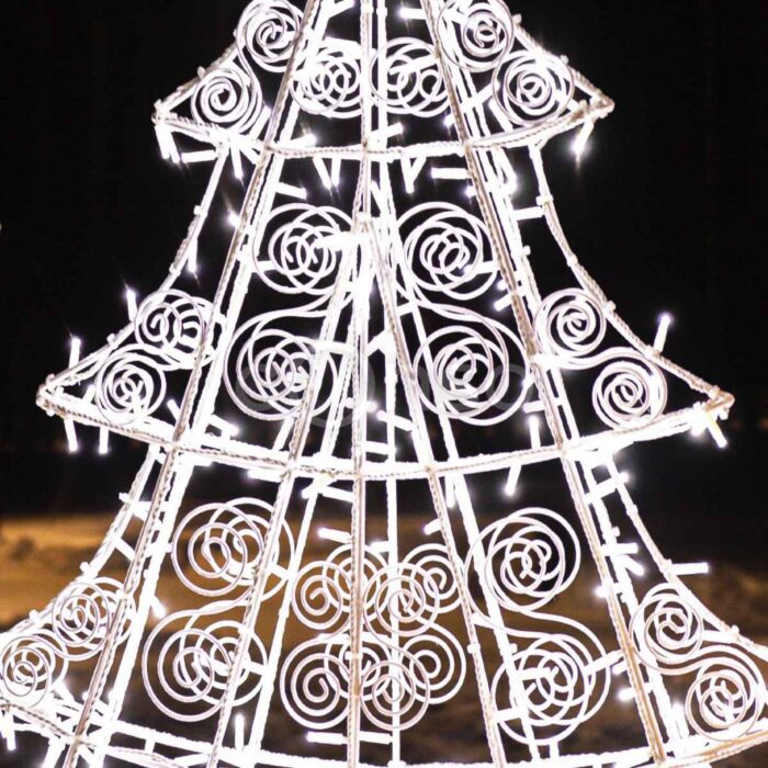 Сияющая, ярко оформленная фигура елочки часто служит элементом декора для входов в различные коммерческие заведения, такие как торговые центры, рестораны, кафе и магазины, способствуя привлечению клиентов. Эти изделия изготавливаются из окрашенной стальной проволоки.