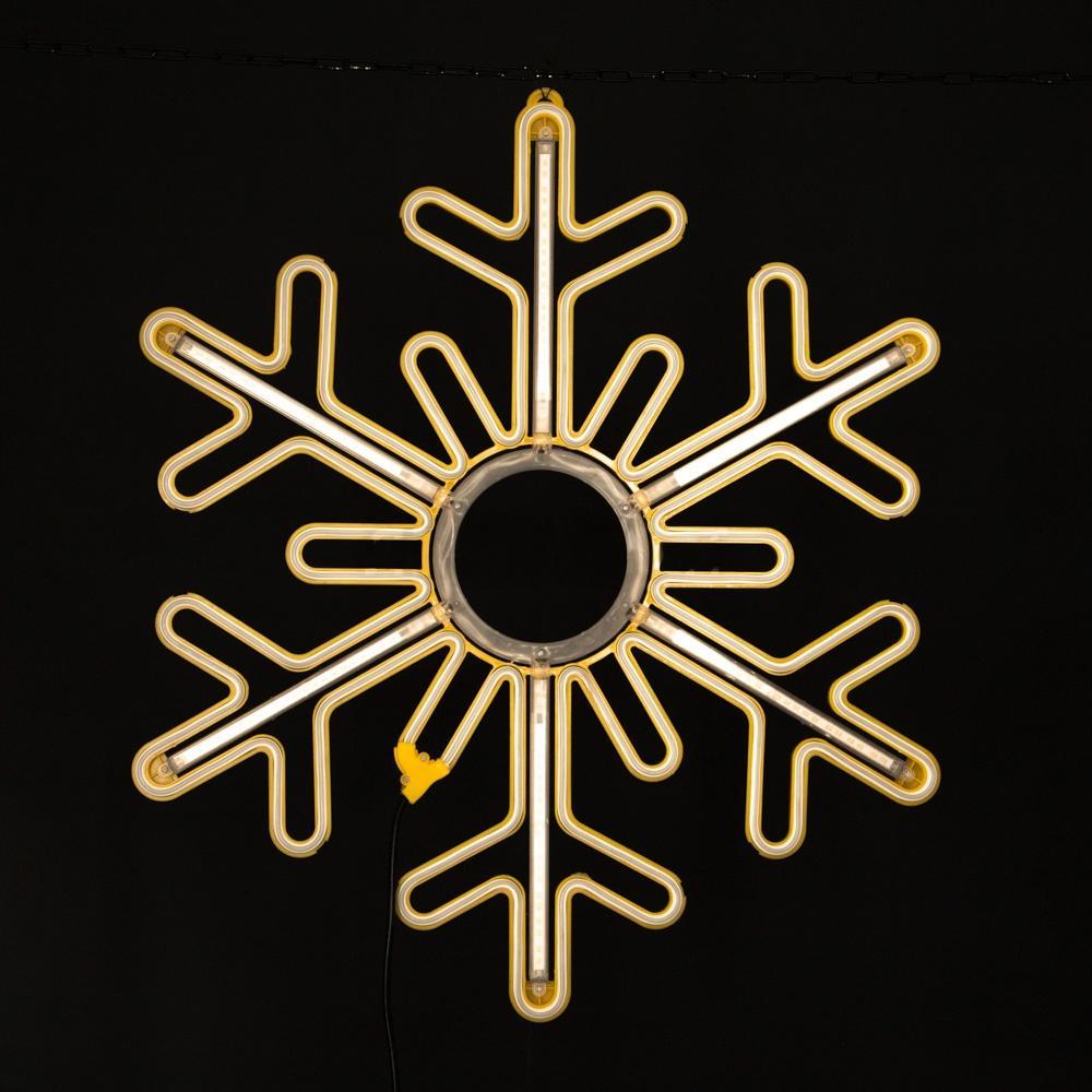 Светодиодная снежинка из неона 7х15мм, 80 см, Тепло-Белый + Белые лучи, IP44