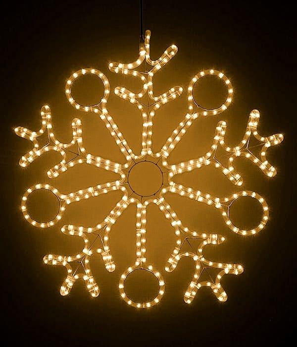 Светодиодная Снежинка «Пять Колец» Ø0,9м Тепло-Белая, Дюралайт на Металлическом Каркасе, IP54
