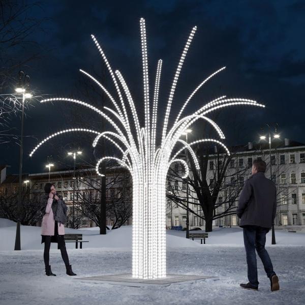 Светодиодное дерево «Пальма» высотой 4 м — оригинальное решение для оформления улиц, парков, площадей и входных групп. Холодное свечение создаёт эффектный акцент, а прочный металлический каркас с защитой IP65 гарантирует надёжность при эксплуатации в любых погодных условиях. Подходит для новогоднего декора, летних мероприятий и городских праздников. Простая установка, экономичное энергопотребление и долгий срок службы.