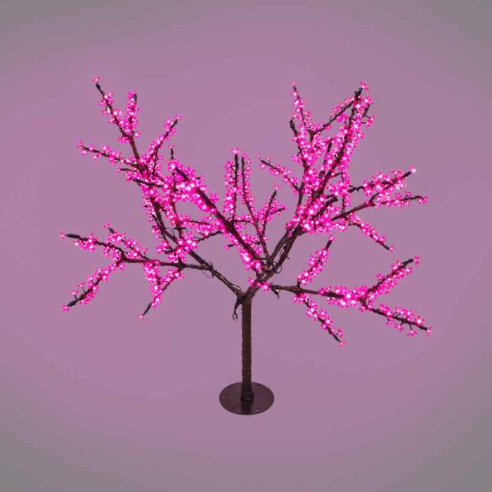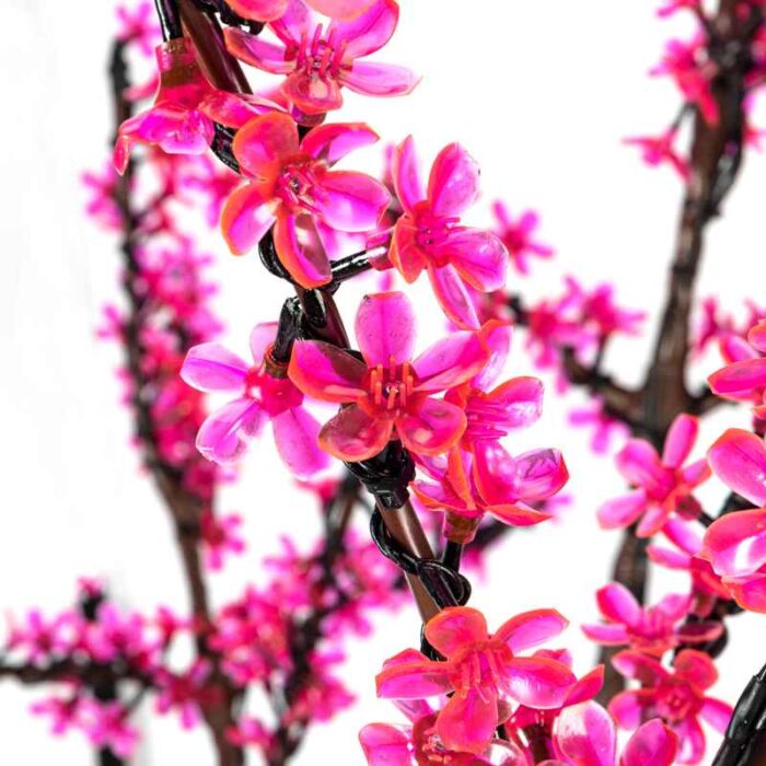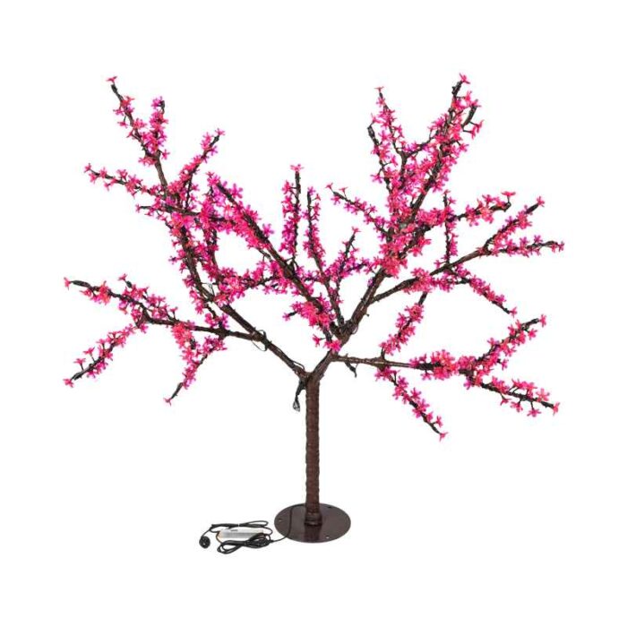 Ветви сакуры изготовлены из прочного металла и ПВХ, устойчивого к перепадам температур и влаге. Вся конструкция защищена по классу IP65, а значит, выдерживает осадки, пыль, снег и ветер. Высота дерева — 1,5 метра, ширина и глубина — до 1,8 м, что делает фигуру компактной, но хорошо заметной.