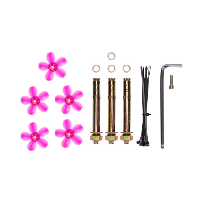 Ветви насыщены светодиодами: всего их 864 штуки. Свет — статичный, равномерный, розовый, без мерцания. Энергопитание — от сети 24 В через адаптер, мощность — 60 Вт. Все подключения защищены, монтаж не требует дополнительных инструментов.