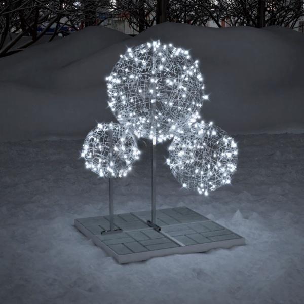 Три светодиодных шара из прочного ровинга на общем основании — стильный элемент новогоднего и городского оформления. Подходят для улицы, защищены по стандарту IP65, работают от сети 24 В. Доступны в тёплом или холодном свечении. В комплект входят пригрузочные плитки.