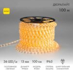 Светодиодный Дюралайт Ø13 мм, двухжильный, ЖЕЛТЫЙ, 230В, 36 LED/м, постоянное свечение, модуль 1м, Бухта 100м