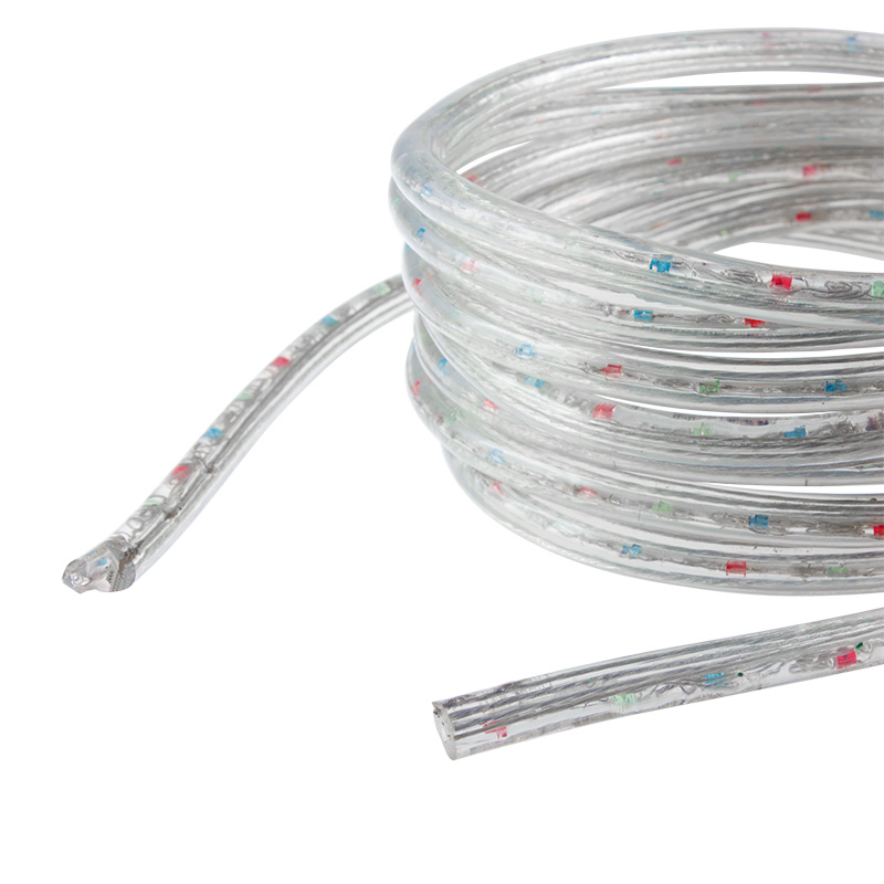 Светодиодный Дюралайт Ø13 мм, трехжильный, МУЛЬТИ (RYGB), 230В, 30 LED/м, свечение с динамикой, модуль 1м, Бухта 100м