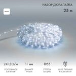 Светодиодный Дюралайт фиксинг Ø11 мм, двухжильный, БЕЛЫЙ, 230В, 24 LED/м, постоянное свечение, модуль 1м, Бухта 25м