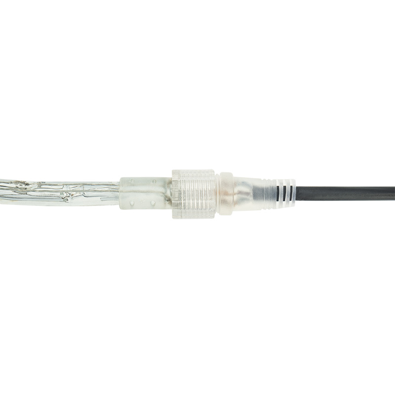 Герметичный корпус, соответствующий стандарту IP65, обеспечивает защиту от пыли и воды, что делает изделие подходящим для использования как в помещениях, так и на открытом воздухе. В комплект входит дюралайт длиной 6 метров, кабель питания с диодной лентой, а также крепежные элементы – саморезы и клипсы.