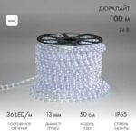 Светодиодный Дюралайт Ø13 мм, двухжильный, БЕЛЫЙ, 24В, 36 LED/м, постоянное свечение, модуль 0,5м, Бухта 100м