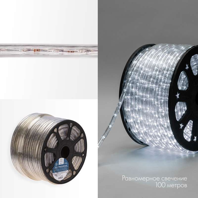 Светодиодный Дюралайт Ø13 мм, трехжильный, БЕЛЫЙ, 230В, 24 LED/м, свечение с динамикой, модуль 4м, Бухта 100м, Эконом