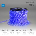 Светодиодный Дюралайт Ø13 мм, трехжильный, СИНИЙ, 230В, 36 LED/м, свечение с динамикой, модуль 4м, Бухта 100м