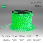 Светодиодный Дюралайт Ø13 мм, трехжильный, ЗЕЛЕНЫЙ, 230В, 36 LED/м, свечение с динамикой, модуль 1м, Бухта 100м