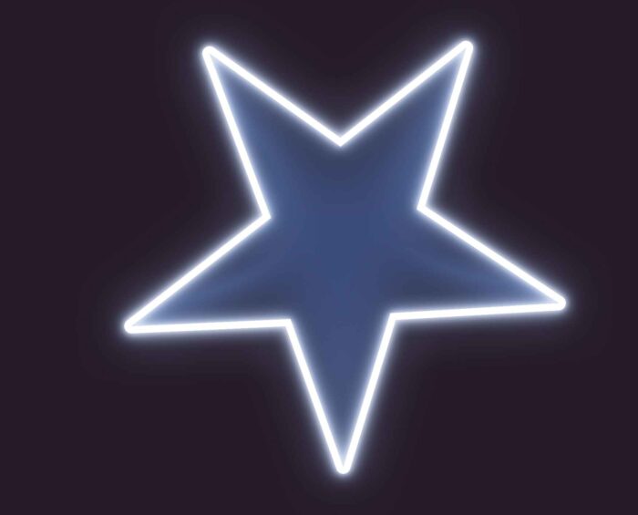 Фигура хорошо смотрится как самостоятельный акцент на фасаде, так и в составе более сложных световых композиций. Особенно эффектно «звёзды» выглядят при размещении вдоль улиц или на торцах зданий. Благодаря холодному свечению они добавляют архитектуре строгость и торжественность.