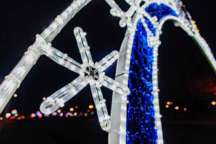 Световая арка СК-149-2 — это декоративная конструкция от JOYLED, созданная для праздничного оформления улиц, торговых и бизнес-центров, парков, площадей и общественных пространств. Её размеры (4×3 м) позволяют использовать арку как самостоятельный объект, а также как часть комплексного светового дизайна. Она задаёт настроение и формирует яркий визуальный акцент, который неизменно привлекает внимание горожан и гостей.