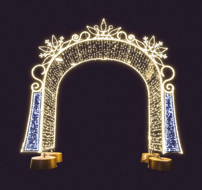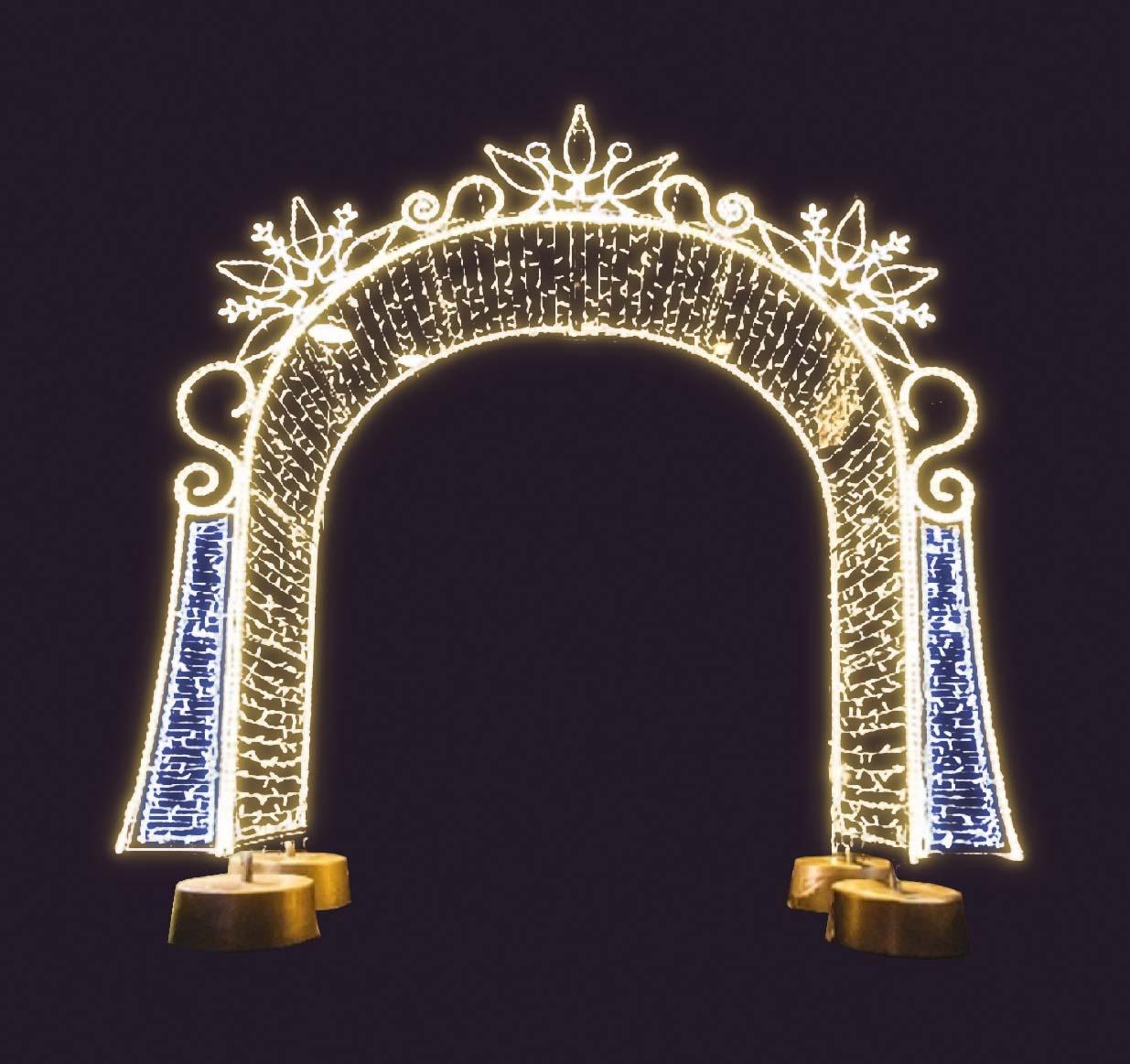 Благодаря универсальному дизайну и качественным материалам арка используется круглый год: зимой — для новогоднего или городского декора, летом — для фестивалей, свадеб, промо-акций.