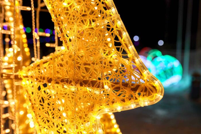 Такая фигура универсальна: она подходит как для новогоднего оформления, так и для световых инсталляций ко Дню города, тематических фестивалей и мероприятий под открытым небом.