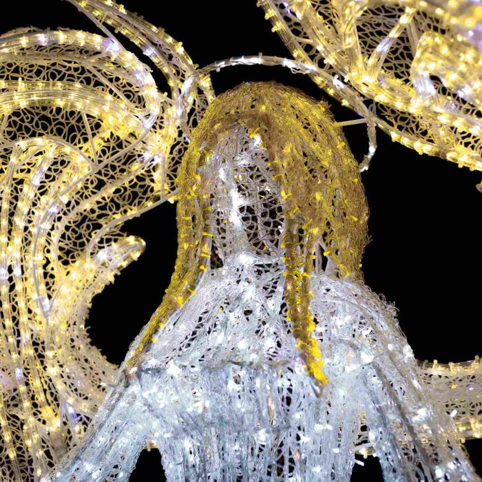 «Ангел» органично вписывается как в масштабные ансамбли подсветки, так и в камерные пространства. Благодаря объёмной 3D-конструкции, его видно издалека, а мягкое сияние делает фигуру живой и выразительной. Это не просто украшение — это смысловой акцент в любом оформлении.