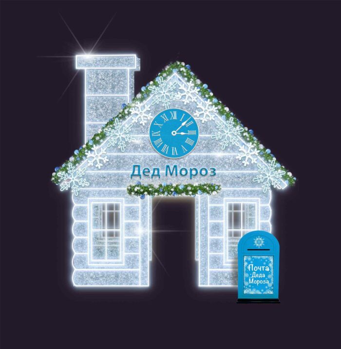 Световая фигура «Дом Деда Мороза» СК-167-1 — это не просто декорация, а полноценный арт-объект, создающий атмосферу зимней сказки. Впечатляющий по масштабу дом высотой 4 метра с холодным сиянием светодиодов мгновенно притягивает внимание. Он вызывает ассоциации с таинственной резиденцией новогоднего волшебника, где сбываются мечты и исполняются желания.