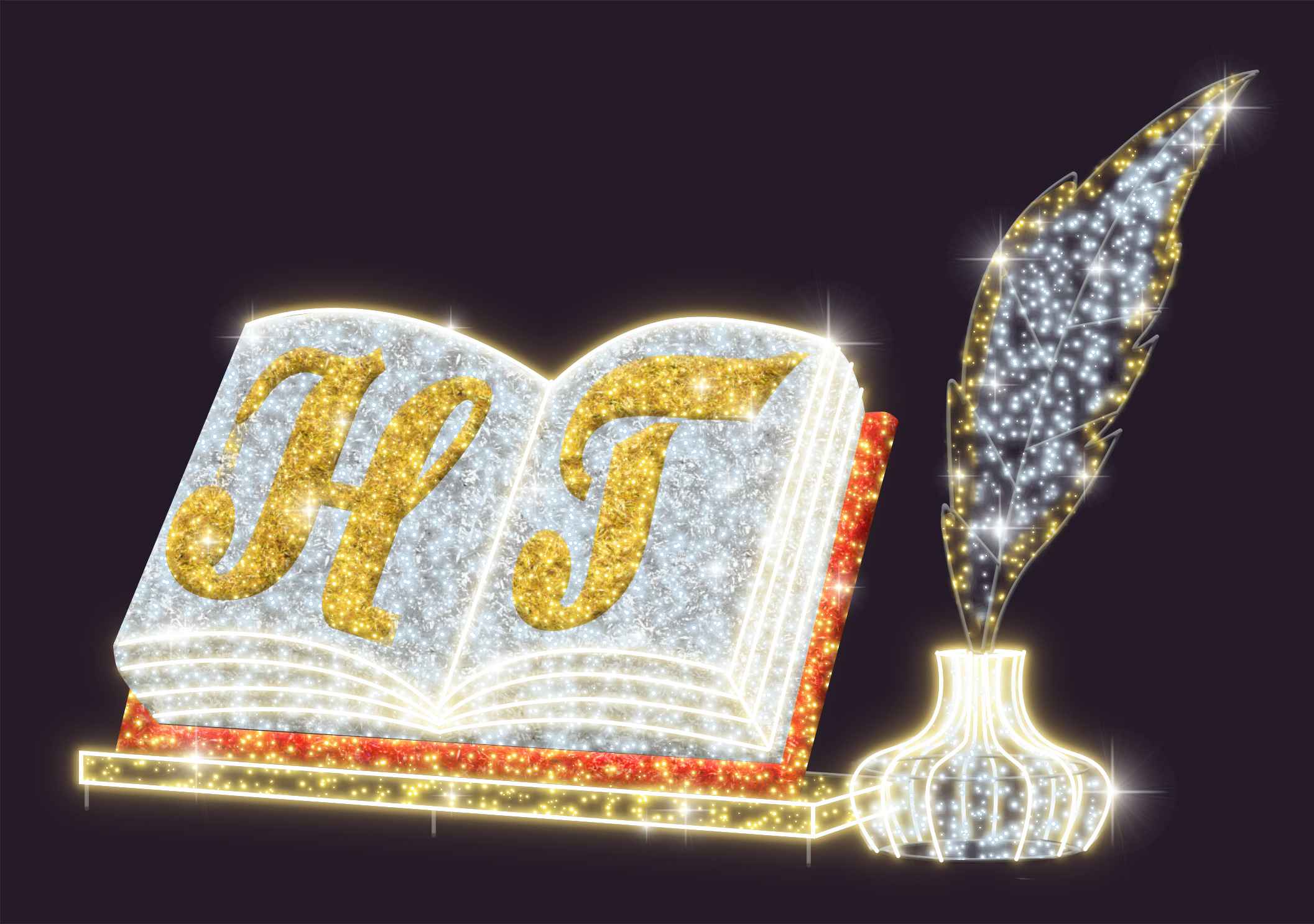 Световая фигура «Книга и перо» СК-169 — масштабная 3D-инсталляция с тёплым свечением, высотой 2,5 м и шириной 4 м. Идеальна для оформления парков, скверов, входных групп и фотозон в рамках культурных и городских мероприятий. Подходит для улицы, работает от сети 24 В. Устойчивый металлический каркас. Доставка, монтаж, аренда — от JOYLED.
