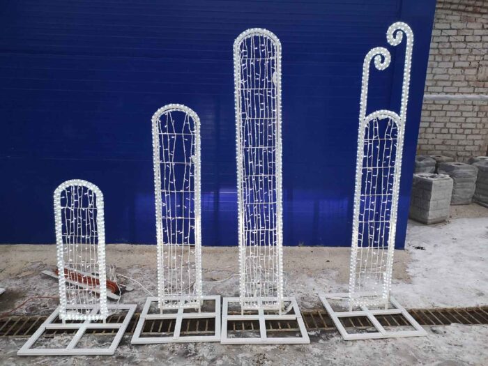 Такие элементы отлично подходят для оформления как общественных, так и коммерческих территорий. Они добавляют художественный акцент, помогают создать целостную композицию и подчеркивают концепцию «зимнего города».