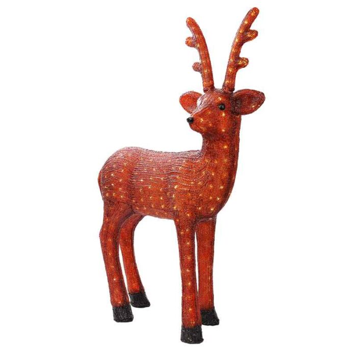 Каркас фигуры выполнен из высокопрочного акрила — это облегчённый, но надёжный материал, устойчивый к температурным перепадам, осадкам, ультрафиолету и загрязнениям. Благодаря степени защиты IP65 «Бурый олень» подходит для круглогодичной уличной эксплуатации.
