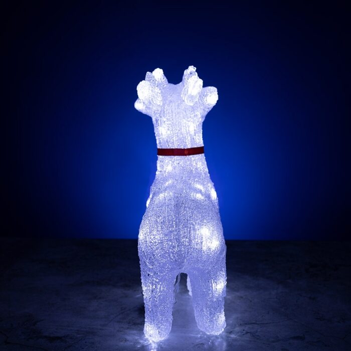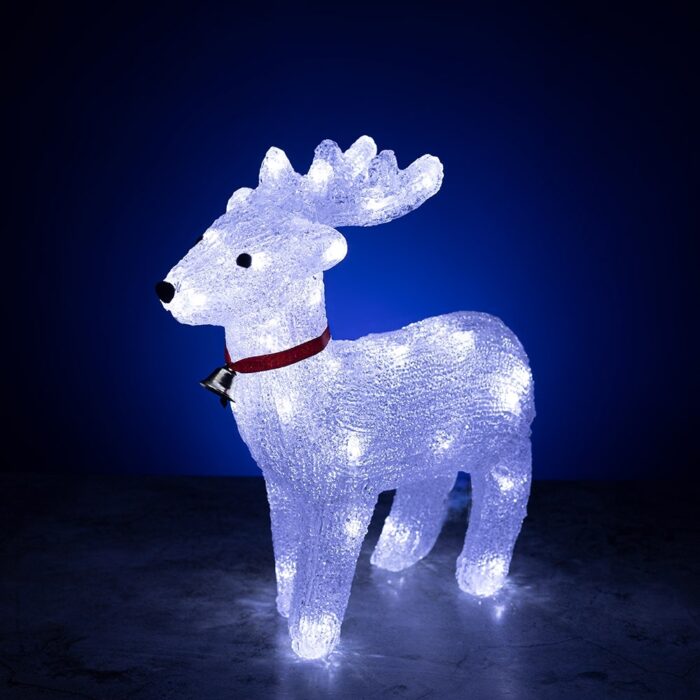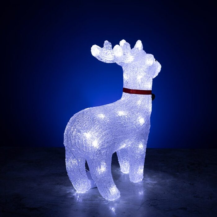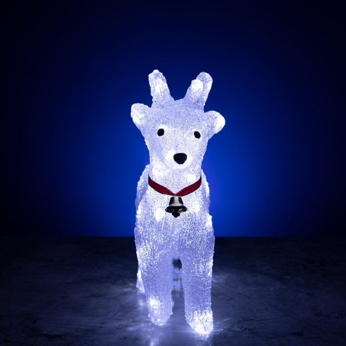 Холодное белое свечение добавляет ощущение свежести и зимней сказки — особенно в вечернее время. «Олень» хорошо смотрится как в одиночной композиции, так и в группе с другими фигурами из серии.