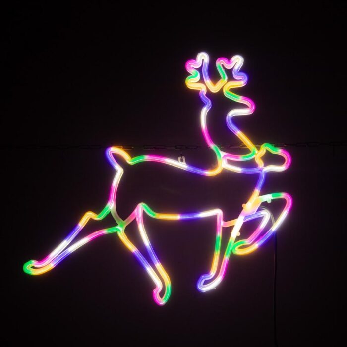 Цветной неоновый олень — универсальный символ зимнего сезона. Он подходит для оформления как частных, так и общественных пространств: