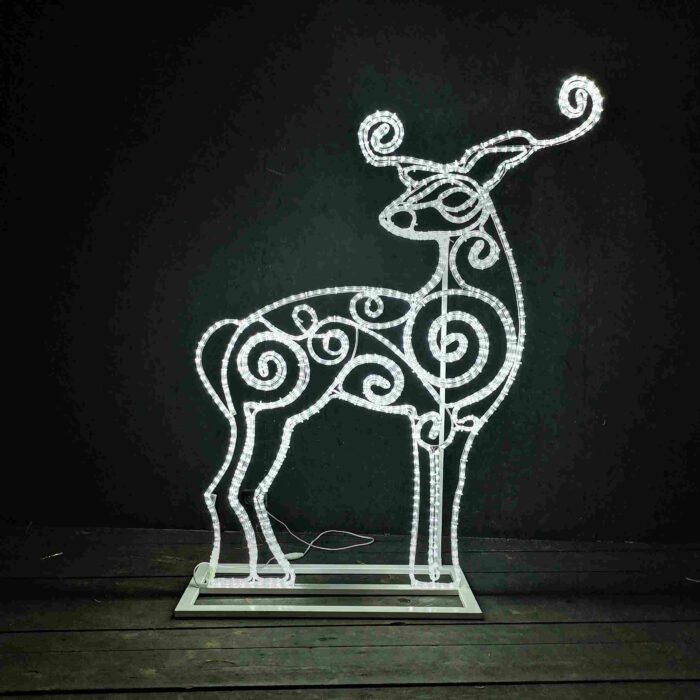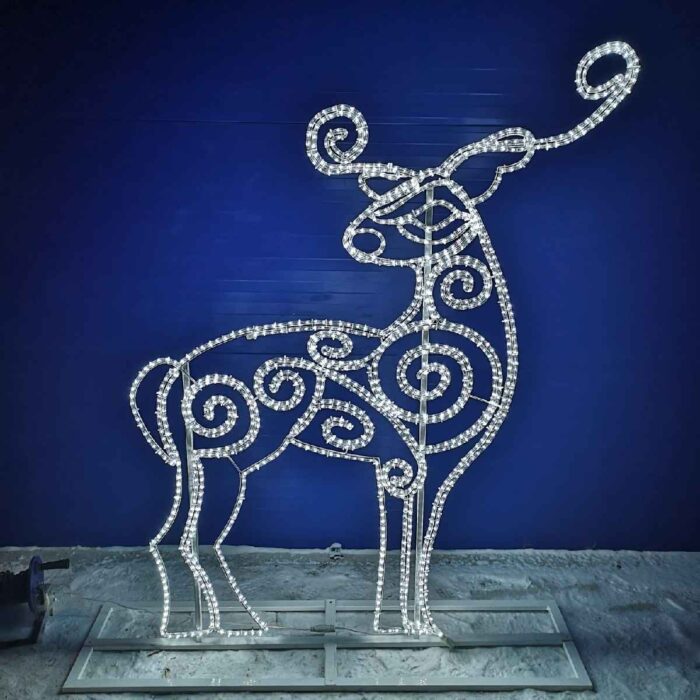 Световая фигура «Олень ажурный» — это элегантное решение для создания праздничной атмосферы на улице, в парке, у фасада или входной группы. Он узнаваем, ассоциируется с Новым годом, символизирует движение, лёгкость и зимнюю сказку. Благодаря ажурной конструкции и лаконичной форме фигура смотрится благородно и изящно, не перегружая пространство.