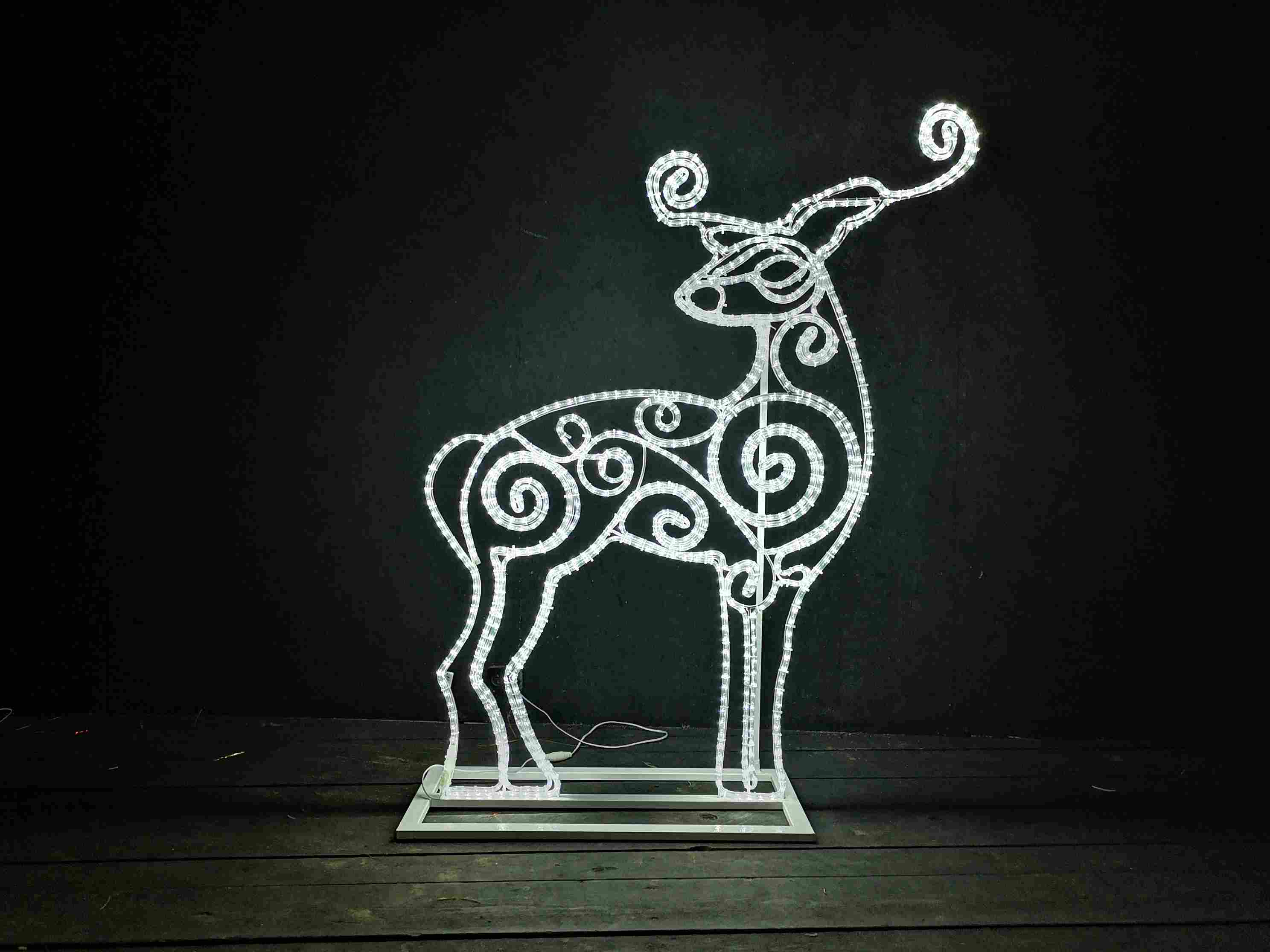 За счёт своей стилистики олень подходит как для традиционных композиций (олень + сани + ёлка), так и для самостоятельной инсталляции.