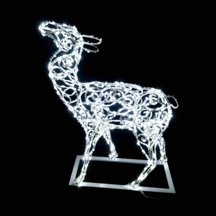 Фигура «Олень ажурный» — это один из самых узнаваемых образов в праздничном световом декоре. Он символизирует волшебство, зиму и движение к чуду. Ажурная конструкция с холодным белым свечением придаёт образу лёгкость и изящество.